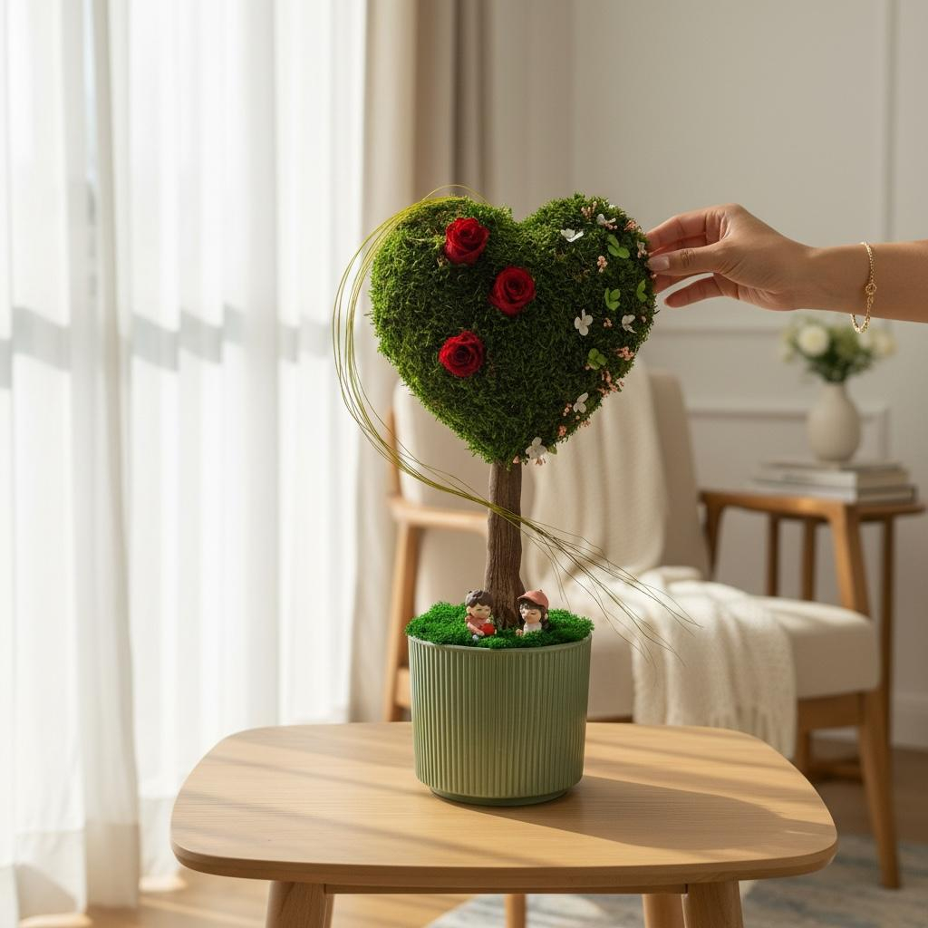 Un decor statement care imbina natura cu eleganta si simbolistica inimii.